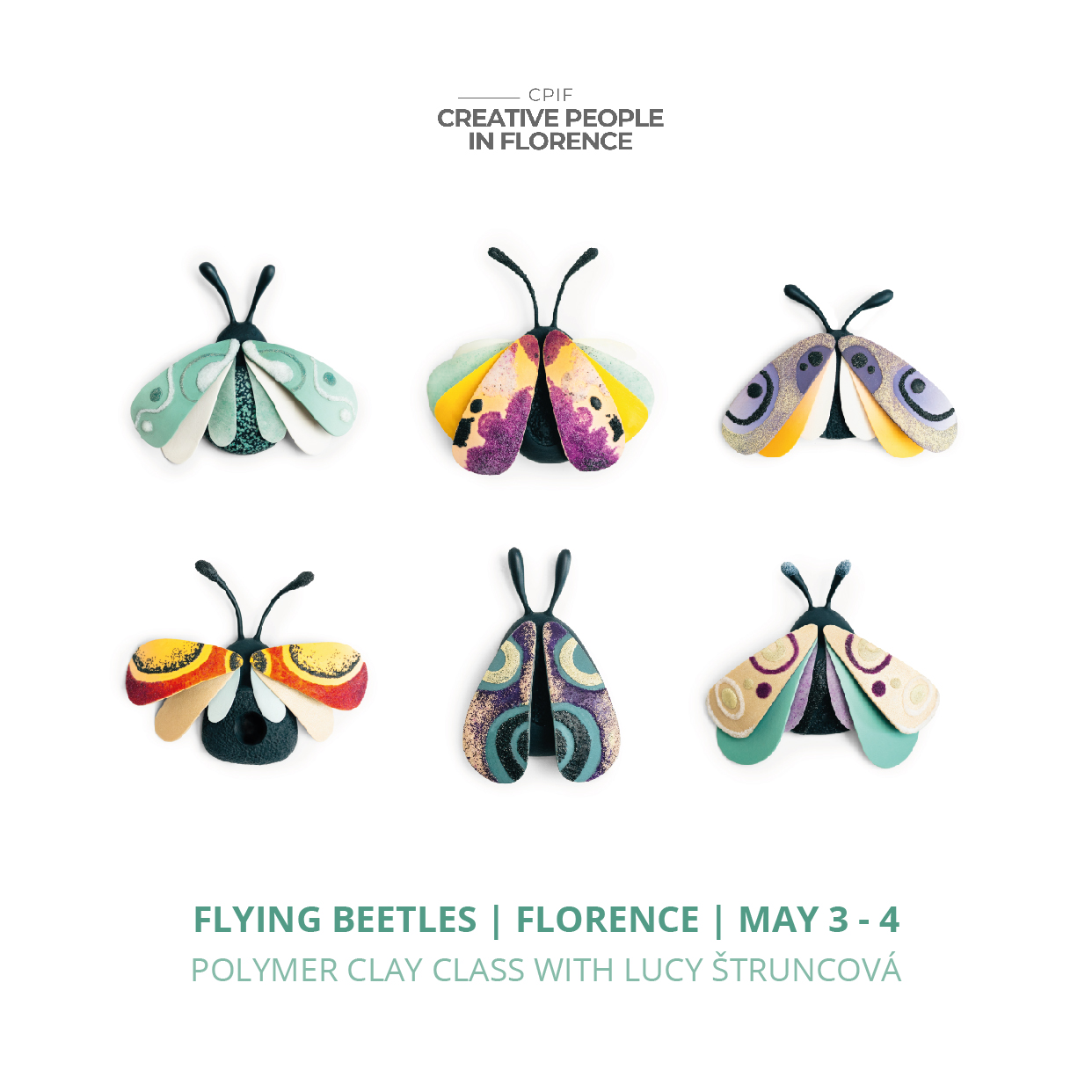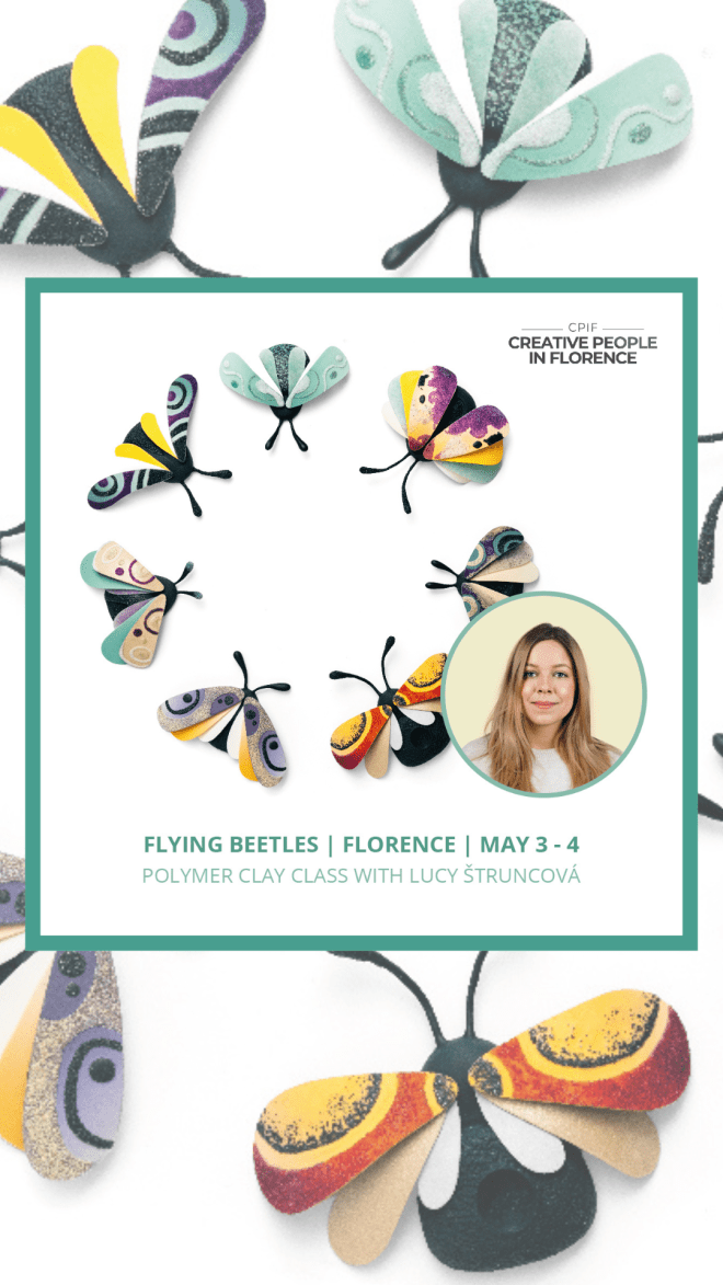 We are excited to invite you to this two-day class, taught by Czech polymer clay artist Lucy Štruncová. You’ll learn to create a lightweight, three-dimensional beetle brooch with cleverly constructed movable wings and antennae, and a elegantly layered of glass details. You’ll be guided through each step of the process, exploring endless possibilities and infusing your creation with your unique style and personality. By the end of the weekend, you’ll take home valuable tips and tricks for working with polymer clay from an expert in the field—along with your very own, one-of-a-kind flying beetle brooch!